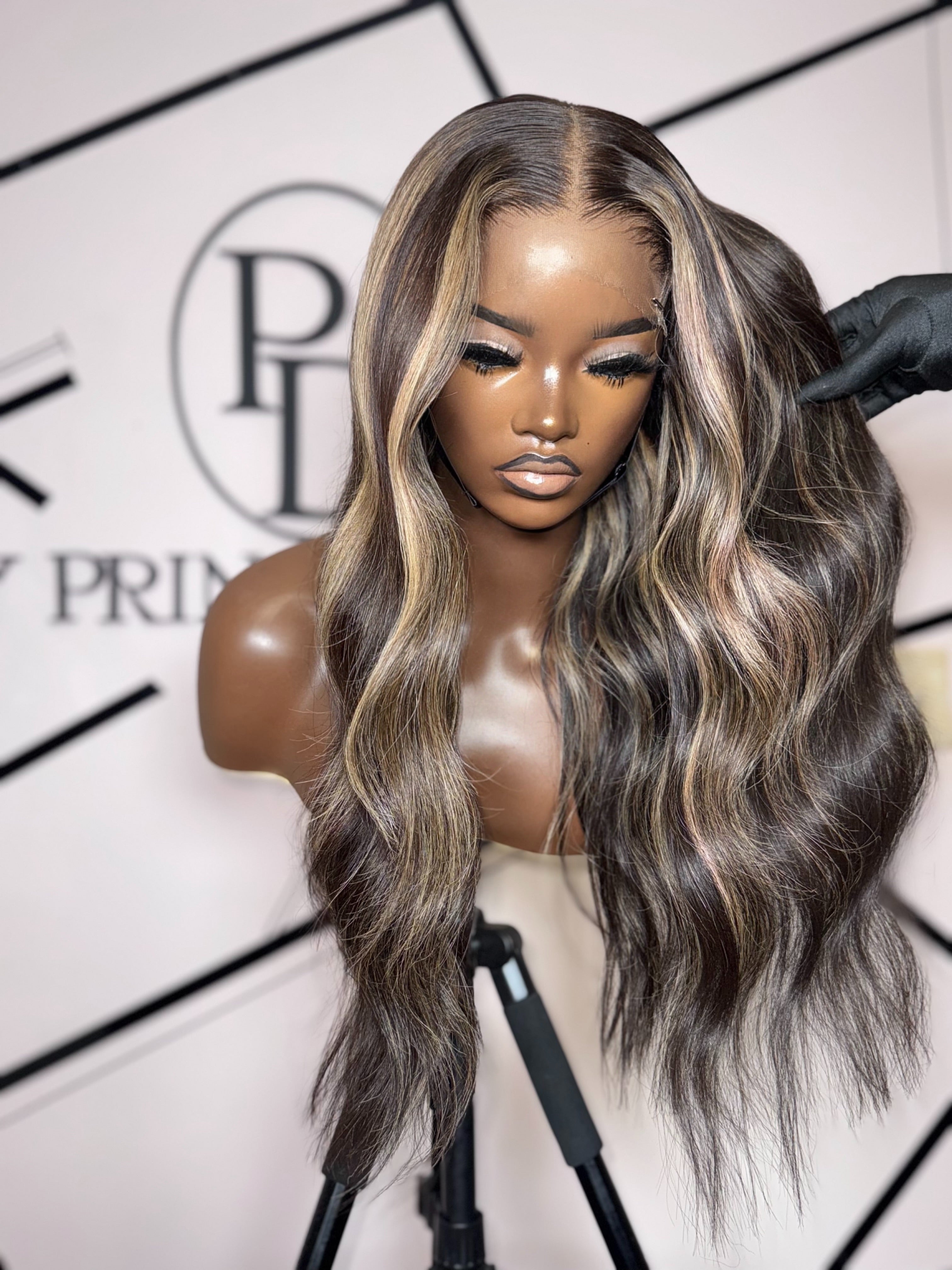 Soft waves with a pop of dimension. This highlighted piece catches the light in all the right ways. Virgin hair keeps it full and smooth, while the hand blended tones create a high end finish.